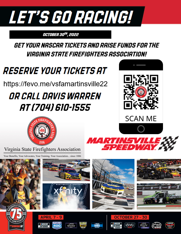 NASCAR partners with VSFA for Race at Martinsville Speedway Posted May 1st, 2022 & filed under News. Special Ticket prices at $45.00 Link to order tickets: Martinsville: https://fevo.me/vsfamartinsville22